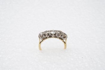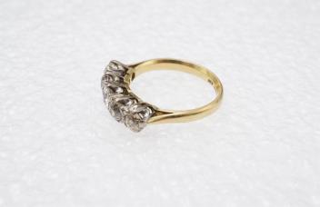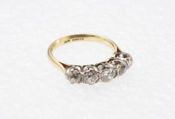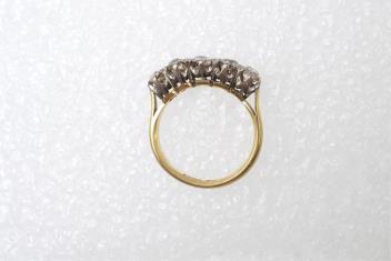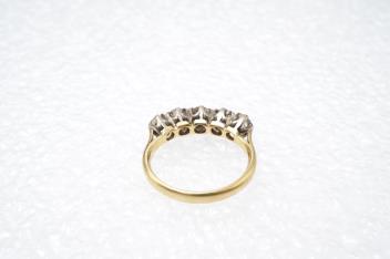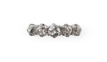 A diamond five-stone ring, early 20th century, claw-set with a sequence of five circular-cut diamonds totalling approximately 0.90 carats, mounted in 18ct gold, size M, British hallmarks, gross weight approximately 4.4 grams