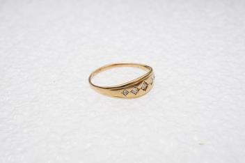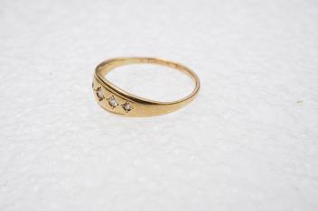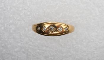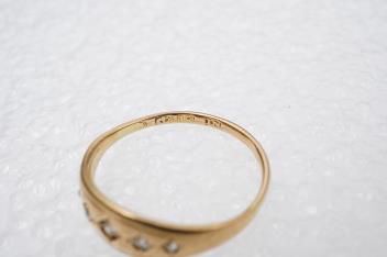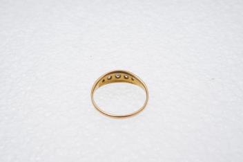A diamond five-stone ring, early 20th century, set with a sequence of five circular-cut diamonds totalling approximately 0.15 carats, mounted in 18ct gold, size R, partial British hallmarks, gross weight approximately 3 grams