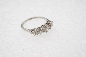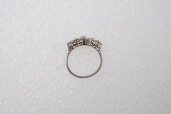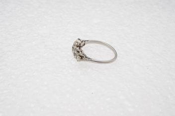 Very pretty and in good condition. Metal unmarked and untested, but probably platinum - not base metal. Largest diamond approximately 0.30 carats. Charming older cuts, one diamond on end possibly a slightly later replacement stone. Appearing generally well-matched for colour and clarity. Overall in good condition, bright and attractive, gross weight approximately 3 grams.