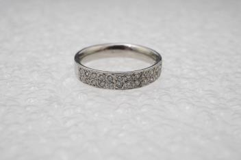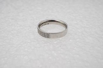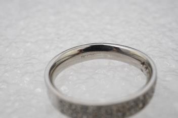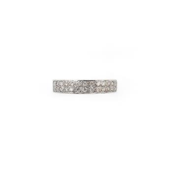 A diamond half eternity ring, pavé-set to the front with brilliant-cut diamonds totalling approximately 0.50 carats, mounted in platinum, size K1/2, British hallmarks, gross weight approximately 5 grams.
