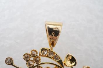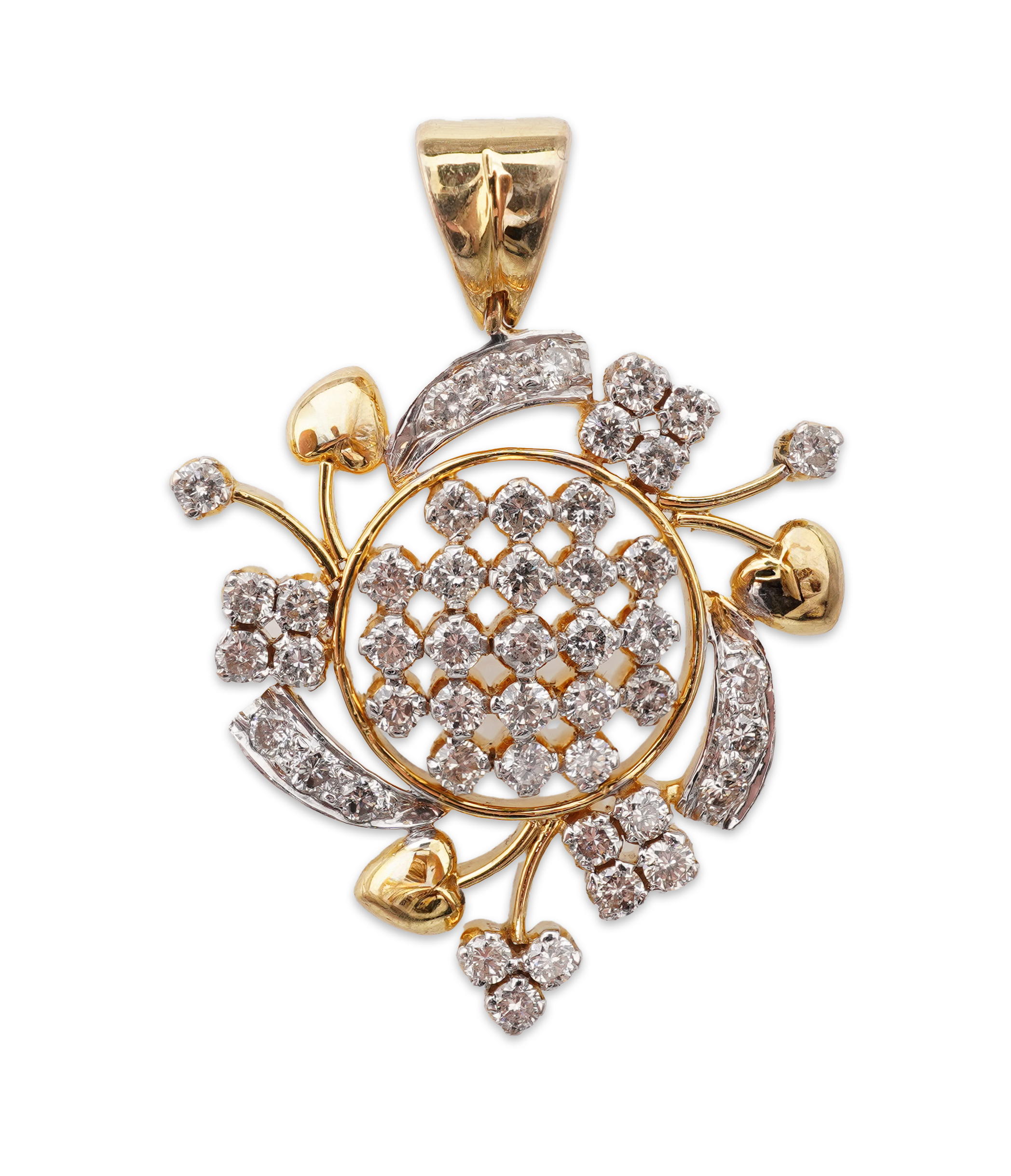 A diamond pendant, of foliate design, set with brilliant-cut diamonds totalling approximately 1.30 carats, mounted in 14ct gold, length 3.6cm, British hallmarks, gross weight approximately 7 grams
