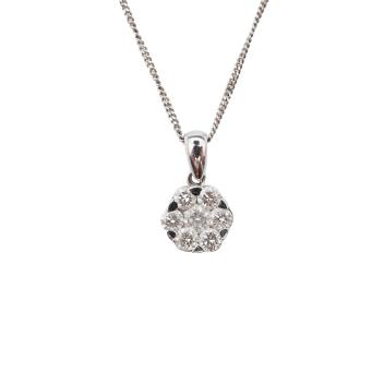 A diamond pendant, designed as a cluster of brilliant-cut diamonds totalling approximately 0.50 carats, to a fine link chain, mounted in 18ct white gold, pendant length 1.4cm, chain length 46cm, chain and pendant with British hallmarks, gross weight approximately 3 grams