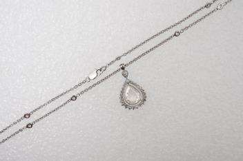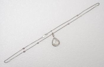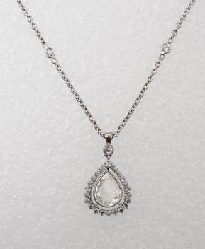 Central diamond measuring approximately 10.5 x 8.0 x 2.2mm, estimated carat weight very approximately 1.10 carats, estimated colour K/L, VS clarity. Beautiful and very unusual cut, possibly antique. Estimated total diamond weight in chain approximately 0.60 carats. Gross weight approximately 8.5 grams.