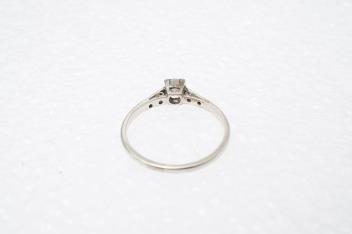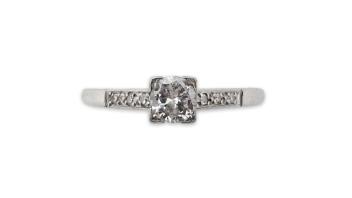 A diamond ring, claw-set with a brilliant-cut diamond weighing approximately 0.30 carats, to shoulders set with single-cut diamonds totalling approximately 0.12 carats, mounted in gold and platinum, size O1/2, stamped PLAT 18CT, gross weight approximately 2 grams