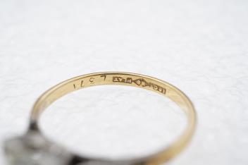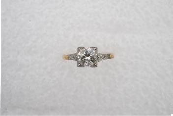 In good condition, central diamond estimated colour J/K, estimated clarity VS, med-strong blue fluorescence.