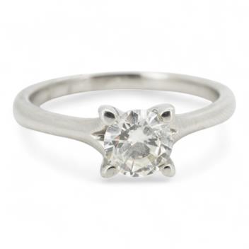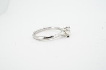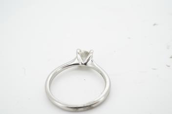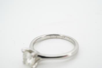 Lot 911 , A diamond ring, claw-set with a brilliant-cut diamond weighing approximately 0.50 carats, mounted in platinum, size K, British hallmarks, gross weight approximately 4 grams
