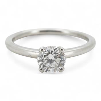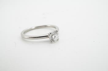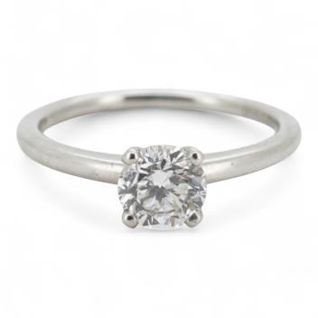 Lot 912 , A diamond ring, claw-set with a brilliant-cut diamond weighing approximately 0.52 carats, mounted in platinum, size L1/2, British hallmarks, gross weight approximately 3 grams