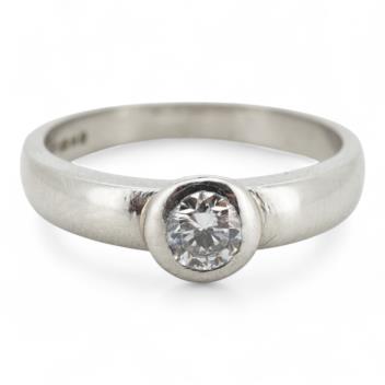 A diamond ring, collet-set with a brilliant-cut diamond weighing approximately 0.52 carats, mounted in platinum, size K1/2, British hallmarks, gross weight approximately 4 grams