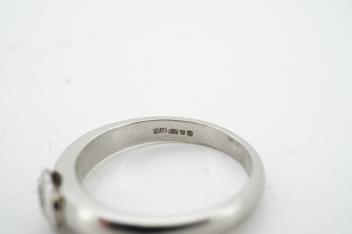 Lot 920 , A diamond ring, collet-set with a brilliant-cut diamond weighing approximately 0.52 carats, mounted in platinum, size K1/2, British hallmarks, gross weight approximately 4 grams