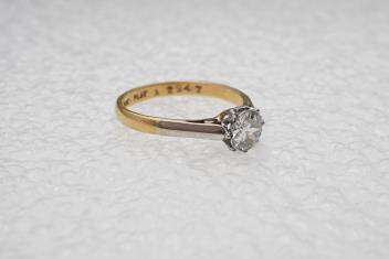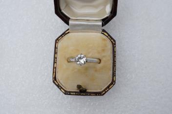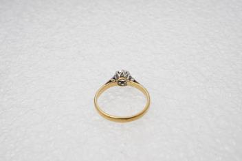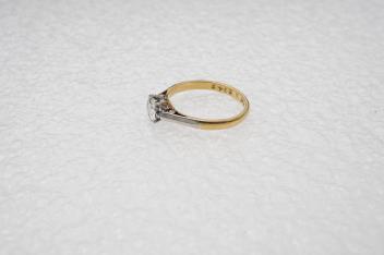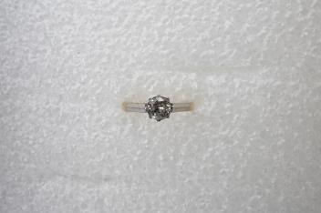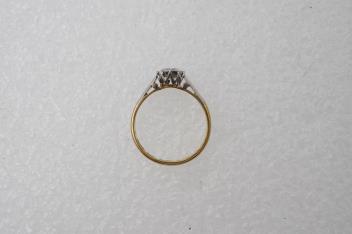 A diamond ring, early 20th century, set with a circular-cut diamond weighing approximately 0.65 carats, to knife-edge shoulders, mounted in gold and platinum, size P1/2, stamped 18CT PLAT