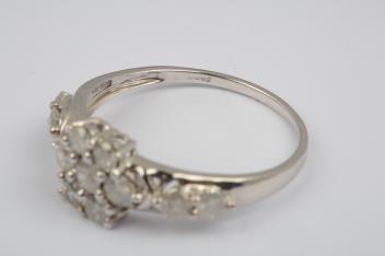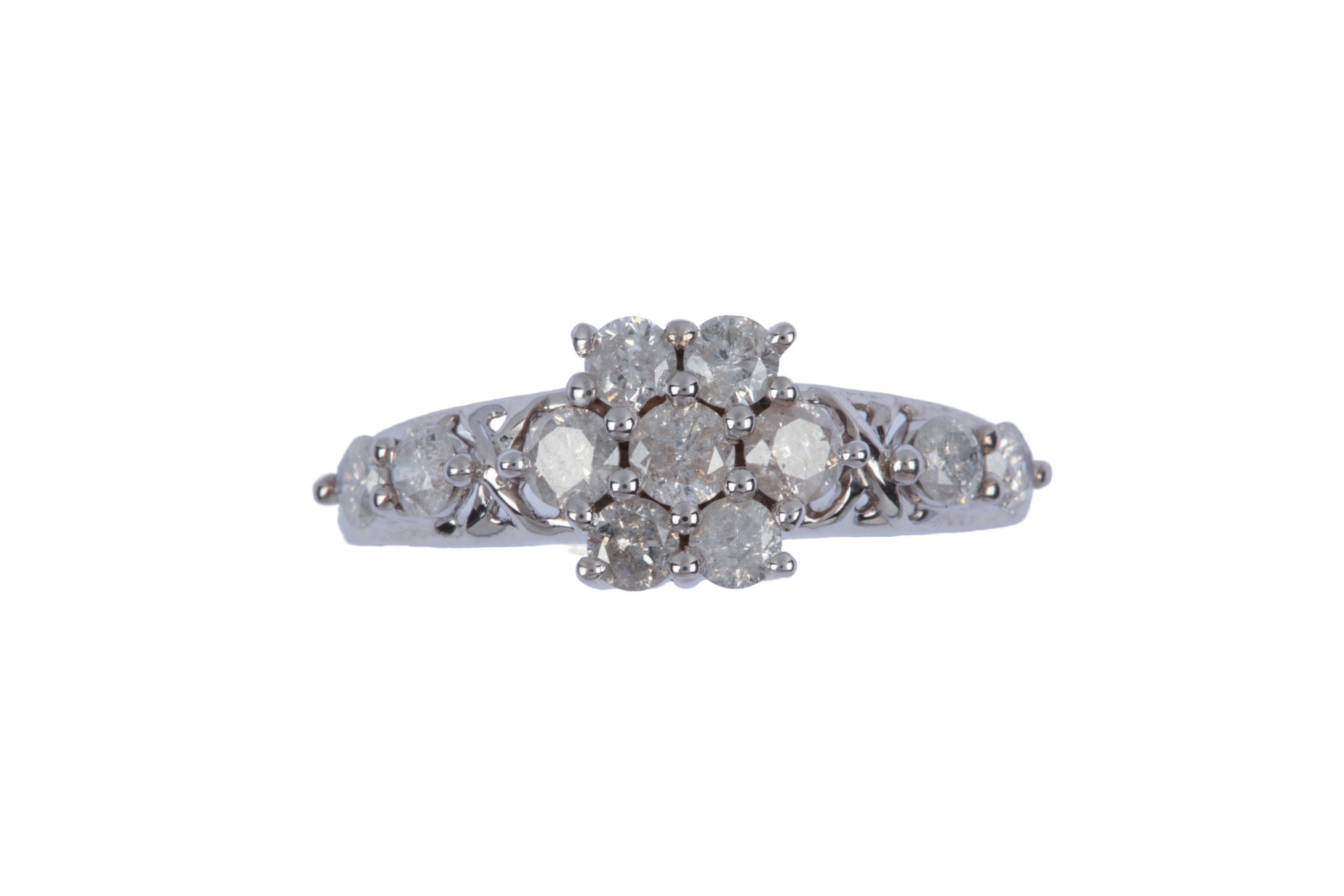 Lot 1175 , A diamond ring, the central cluster and shoulders set with brilliant-cut diamonds totalling approximately 1.00 carat, mounted in 9ct white gold, size R1/2, British hallmarks, gross weight approximately 2.5 grams