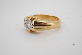 Lot 2923 , A diamond signet ring, claw-set with a brilliant-cut diamond weighing approximately 0.50 carats, mounted in gold, size Q, stamped 18CT, gross weight approximately 8.5 grams