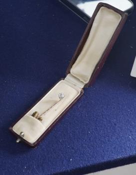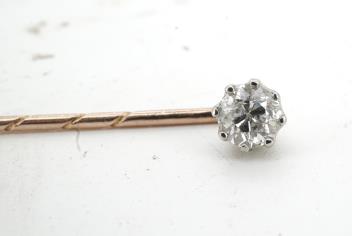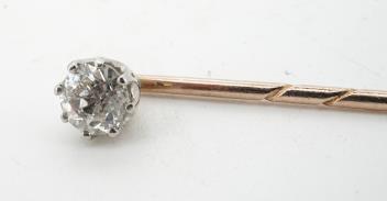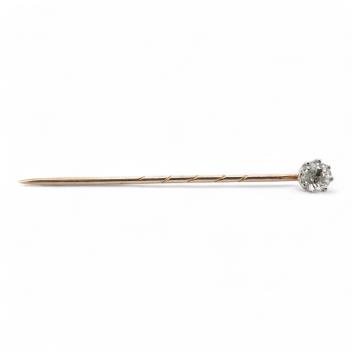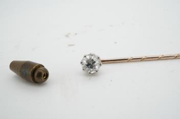 Lot 926 , A diamond stick pin, early 20th century, claw-set with a circular-cut diamond weighing approximately 0.50 carats, mounted in gold, length 5.4cm