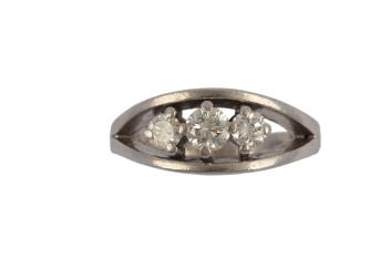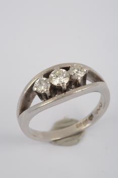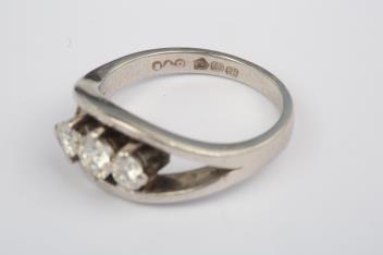 A diamond three-stone ring, circa 1976, claw-set with three brilliant-cut diamonds totalling approximately 0.50 carats, mounted in platinum, size K1/2, gross weight approximately 6 grams