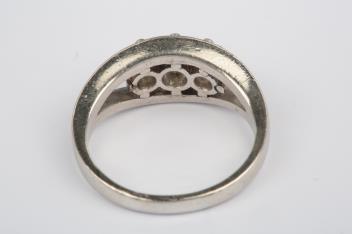 One of the smaller diamonds chipped - not obvious to naked eye. Overall in good condition, diamonds bright and lively and attractive, in well-made mount.