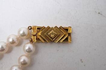 Good quality cultured pearls, well-matched, with good lustre. Typical minor wear, overall in good condition.