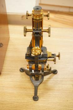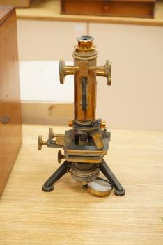 Lot 270 , A early 20th century brass compound monocular microscope, by W. Watson and Sons, 313, High Holborn, London, number 9385, mahogany cased, with accessories including - four additional objectives, two eyepieces and a bull’s