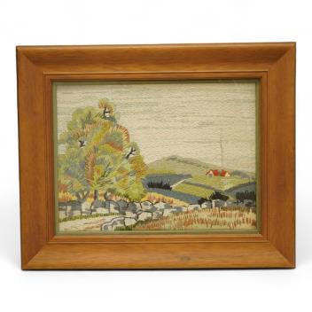 Lot 1460 , A framed 1930's woolwork landscape framed picture, 29cm x 23cm