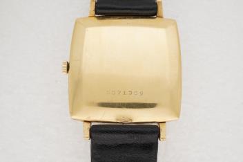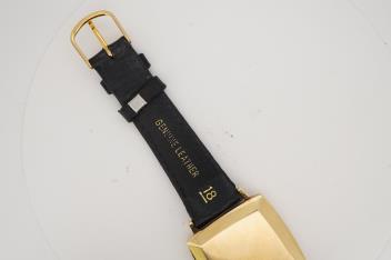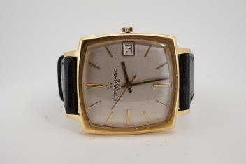 Lot 109 , A gentleman's 18ct gold Eterna-Matic 3000 wrist watch, with baton hour marker, centre seconds hand and calendar aperture at 3 o’clock, on an associated black leather strap