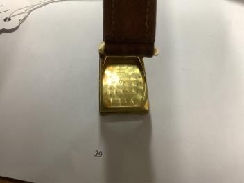 A gentleman's 1930's 18ct gold Vacheron & Constantin manual wind wrist watch, the rectangular dial with baton numerals and subsidiary seconds, case diameter 23mm, the signed movement numbered 420160, the inner case back numbered 262072 and import marks for London, 1937, on an associated brown leather strap, gross weight 30.3 grams.