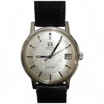 Lot 1907 , A gentleman's 1960's? stainless steel Omega Automatic wrist watch, with baton numerals and date aperture, case diameter 35mm, on an associated strap, no box or papers.