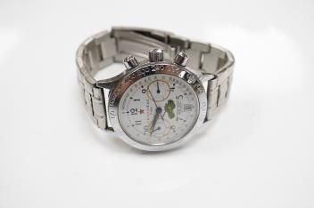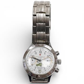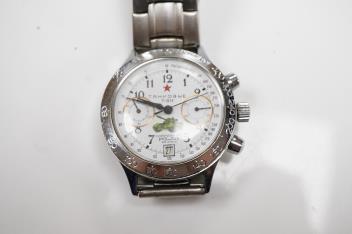 A gentleman's Russian stainless steel Poljot Chronograph Tank 80 mechanical wrist watch, on a stainless steel bracelet, case diameter 37mm.