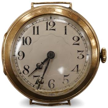 Lot 901 , A gentleman's mid 1920's 9ct gold manual wind wrist watch, with Arabic dial, case diameter 30mm, no strap.