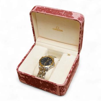 Lot 1931 , A gentleman's mid 1980's stainless steel and gold plated Omega Seamaster Professional Chronometer automatic wrist watch, with blue dial, dot numerals and date aperture, movement c.1109, case diameter 40mm, on an Omega st