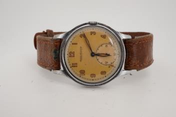 Lot 99 , A gentleman's mid 20th century nickel plated brass Jaeger LeCoultre manual wind wrist watch
