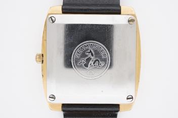 Lot 2907 , A gentleman's steel and gold plated Omega Seamaster automatic wrist watch, with baton numerals and date aperture, case diameter 38mm, on an associated leather strap, no box or papers.