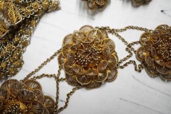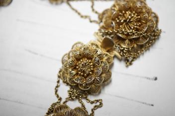 Lot 1915 , A gilt white metal filigree parure, comprising a necklace, 36cm, with flower head motifs, a pair of flower head earrings and a bracelet.