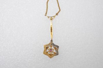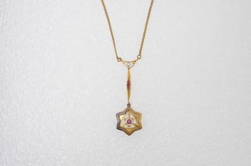 Lot 341 , A gold, ruby and seed pearl pendant necklace, early 20th century