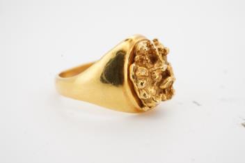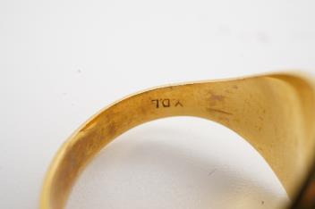 Lot 2958 , A gold signet ring, of textured design, to a tapering polished band, size N, stamped 10K, gross weight approximately 8 grams