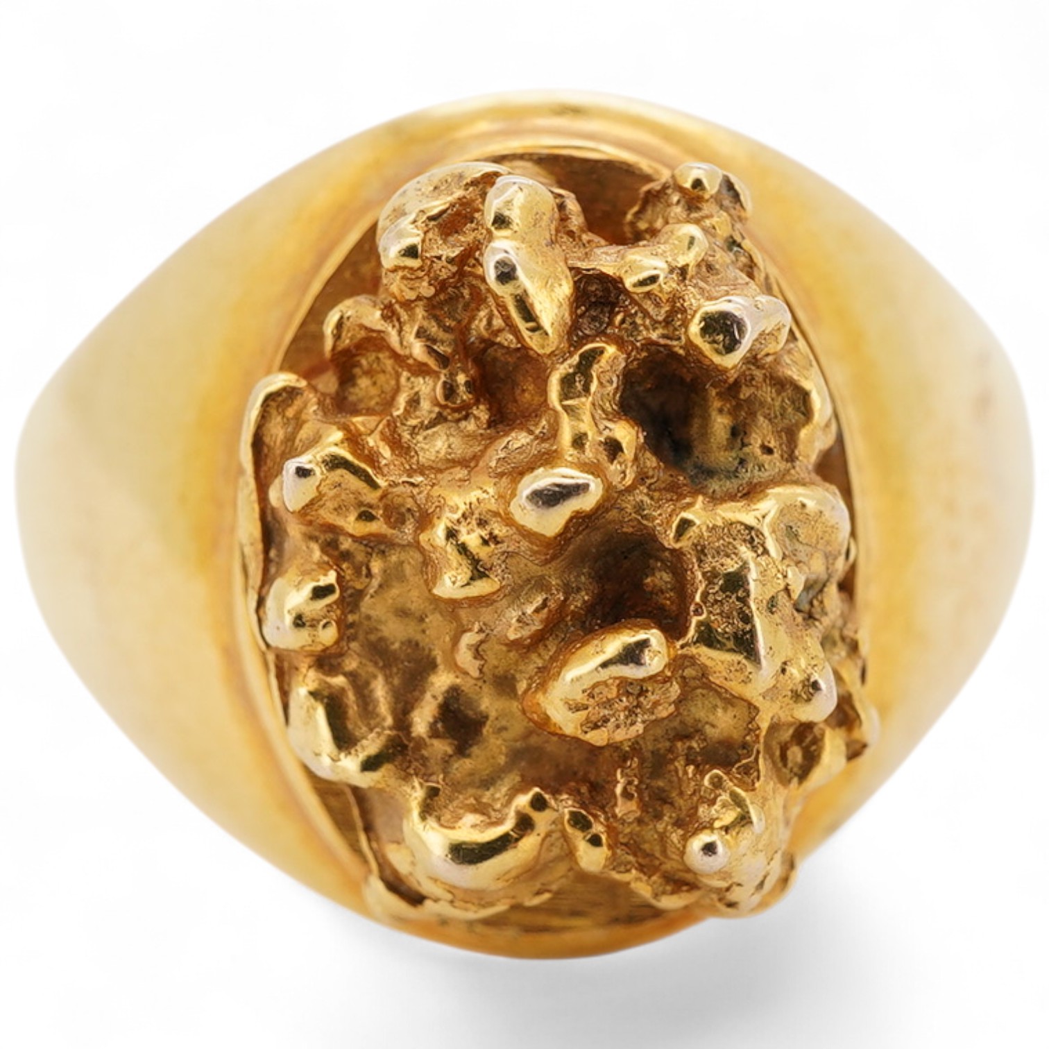 A gold signet ring, of textured design, to a tapering polished band, size N, stamped 10K, gross weight approximately 8 grams