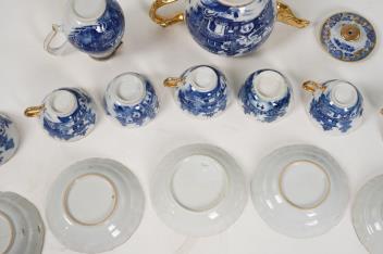 Lot 100 , A group of Chinese gilt-decorated blue and white tea wares, Qianlong period