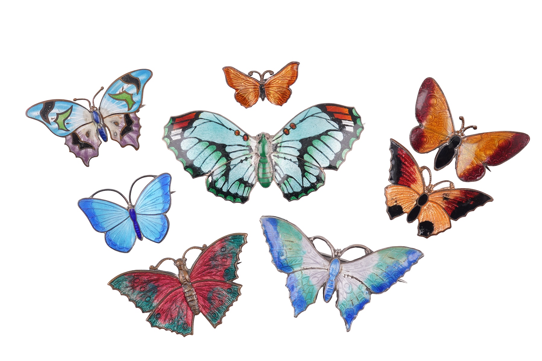 Lot 130 , A group of eight enamel butterfly brooches, mid 20th century