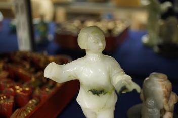 Lot 2478 , A group of six Chinese hardstone and soapstone carvings, tallest 13cm