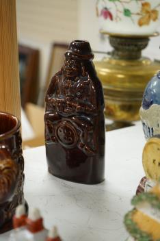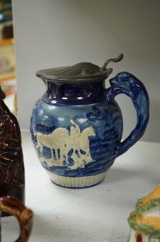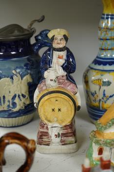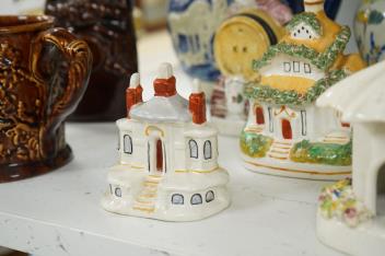 Lot 1461 , A group of various Victorian Staffordshire pottery models of cottages and various figure moulded vessels together with an Italian maiolica ewer, tallest 25cm