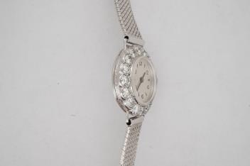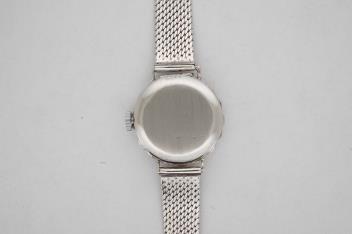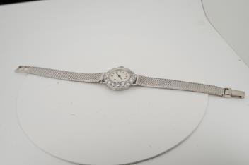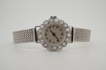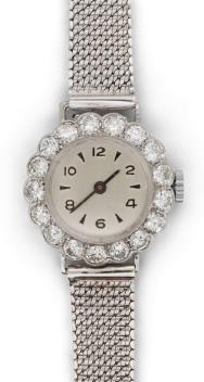 Lot 127 , A lady's early 1940's platinum and diamond set manual wind cocktail watch, on a 9ct white gold mesh link bracelet