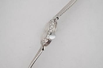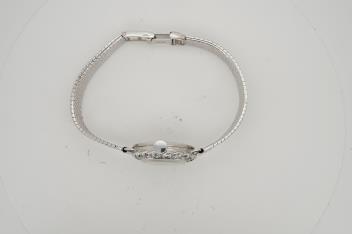 Small dent to the hoop link for one lug. No visible damage to any of the stones. A few minor scratches to the dial cover. Dial in good order. Clasp works. Watch ticks when wound and the hands adjust. Circular cut stones , approx. 2.7mm. 17 stones at approx. 0.15ct. UK P&P £25.