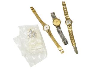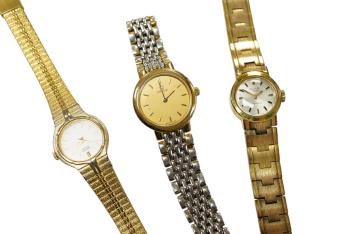 Lot 1923 , A lady's steel and gold plated Omega de Ville quartz wrist watch, on a steel and gold plated Omega bracelet, case diameter 20mm, with spare links and two other lady's steel and gold plated wrist watches, Seiko and Avia.