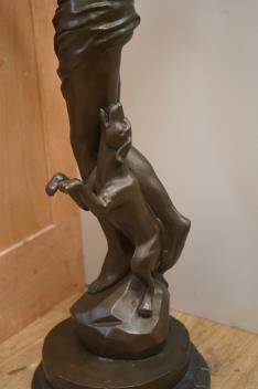 Lot 1411 , A large Art Deco style patinated bronze figure of Diana, unsigned on black marble base, height 85cm