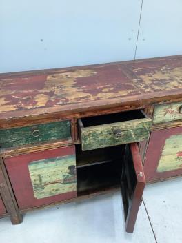 Lot 168 , A large Chinese painted and lacquered sideboard, width 235cm, depth 46cm, height 80cm