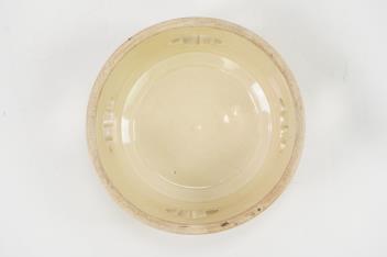 The base of the vase has been heavily restored, one of the handles has been detached and re attached, an area of the rim has been restored as well as the upper rim of the stand. One of the ‘flower’ mounts has been chipped and has a firing crack running through it. Wear and scratches throughout.