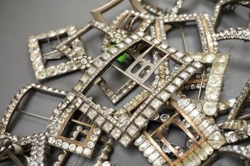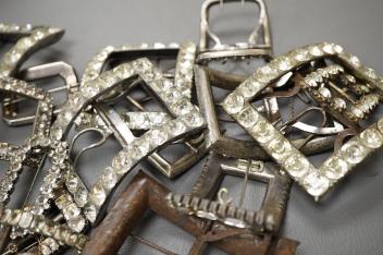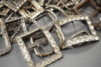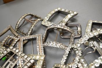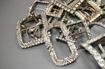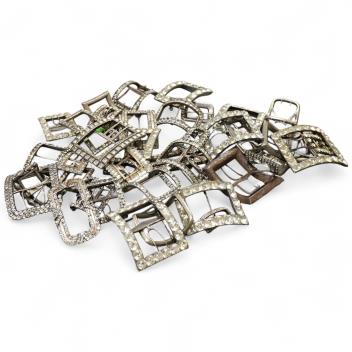 Lot 3027 , A large collection of shoe buckles, 18th-19th century, of rectangular outline, set with pastes, mostly mounted in steel, a minority in silver, some with later brooch fittings