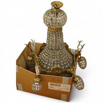 Lot 2505 , A large five light basket chandelier mounted with gilt metal stags heads, 90cm high
