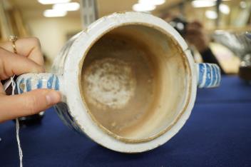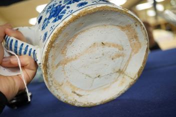 Lot 2465 , A late 17th century Delftware posset pot, 23cm wide