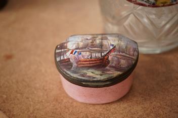 Lot 1353 , A late 18th century Bilston enamel box and engraved decanter - 24cm high