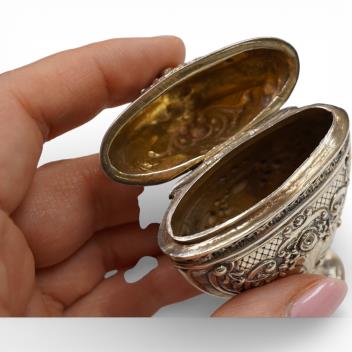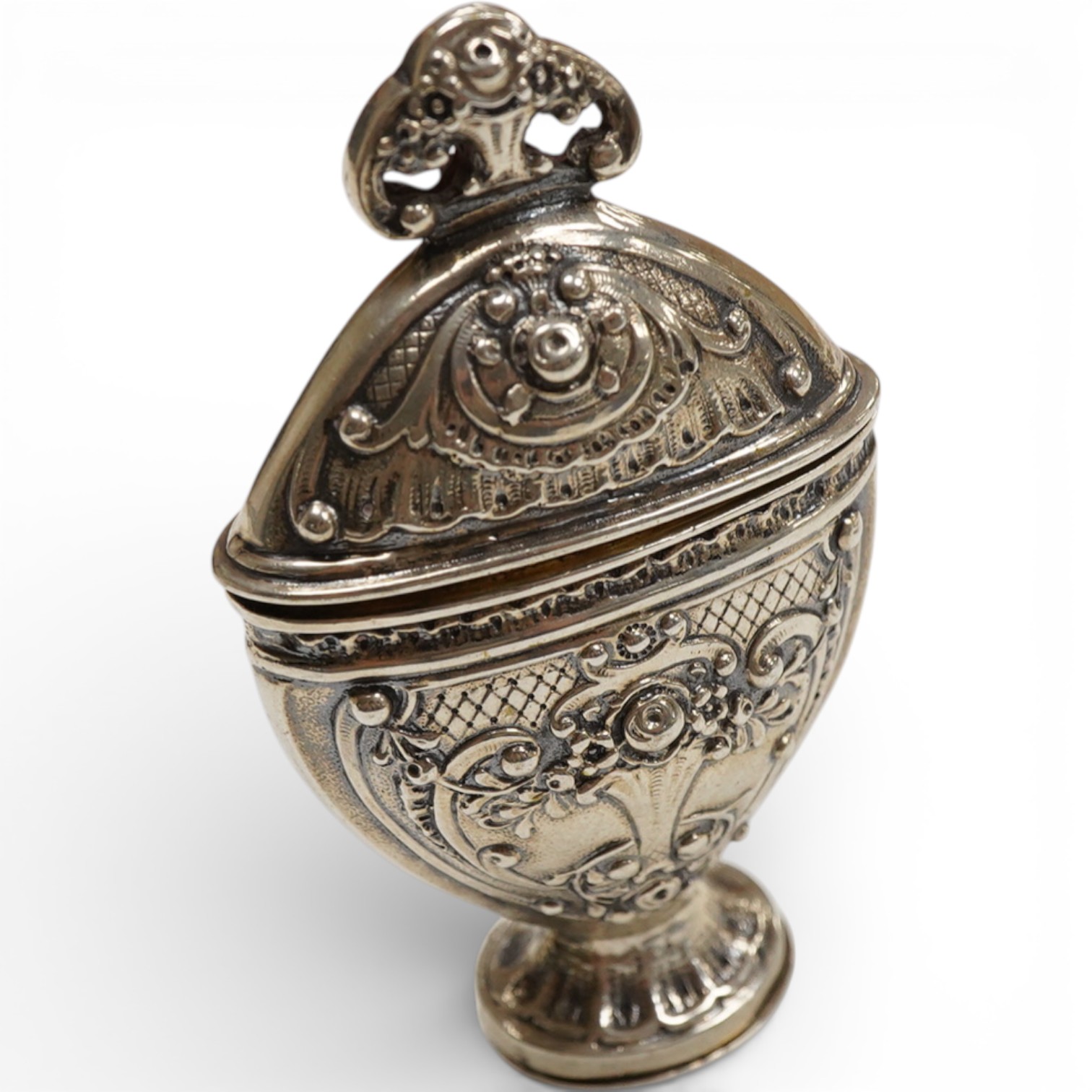 Lot 827 , A late 18th/early 19th century Scandinavian white metal heart shaped Hovedvandsaeg (vinaigrette), unmarked, 86mm.