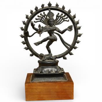 Lot 396 , A late 19th / early 20th century North Indian Shiva Nataraja bronze figure, 23cm, on wood plinth